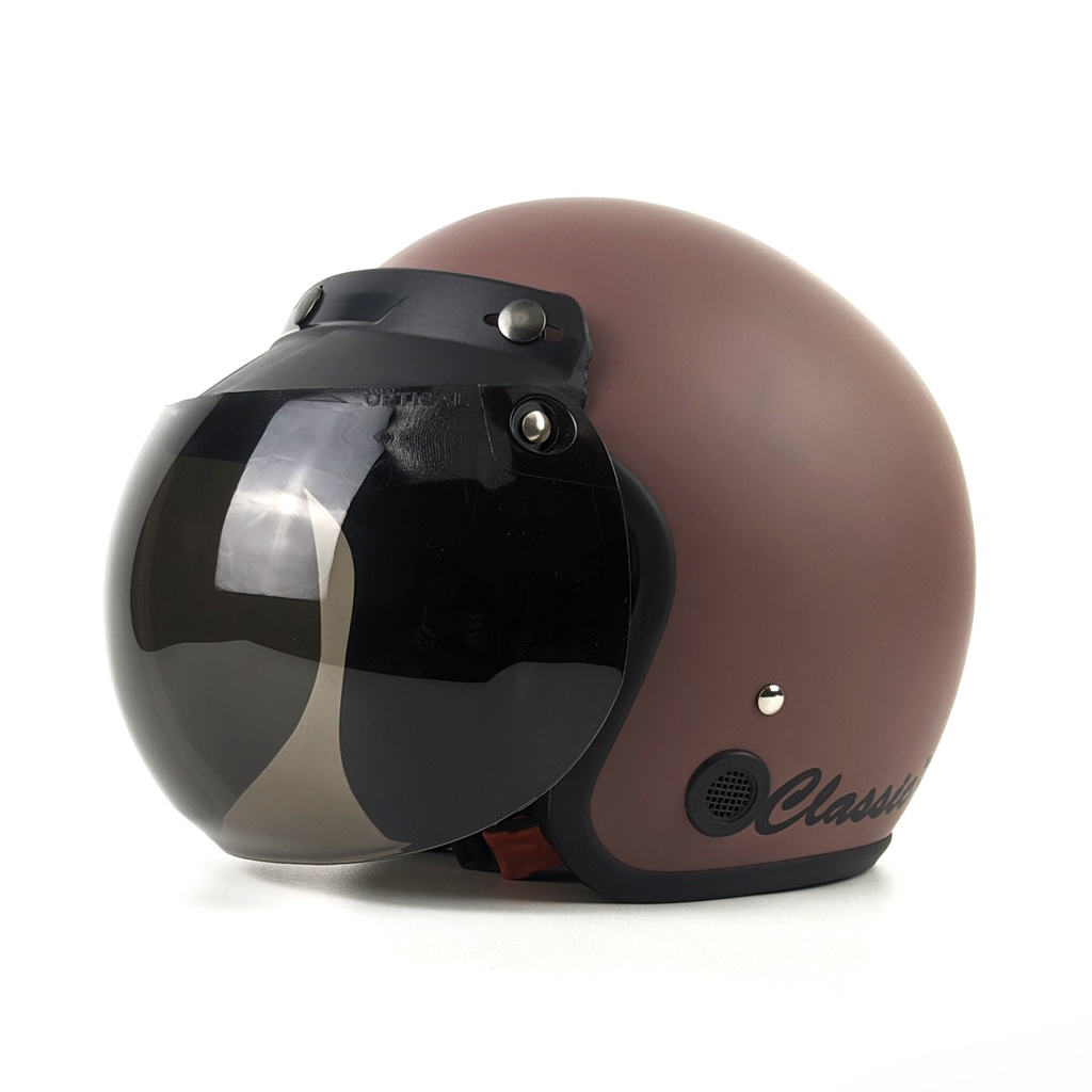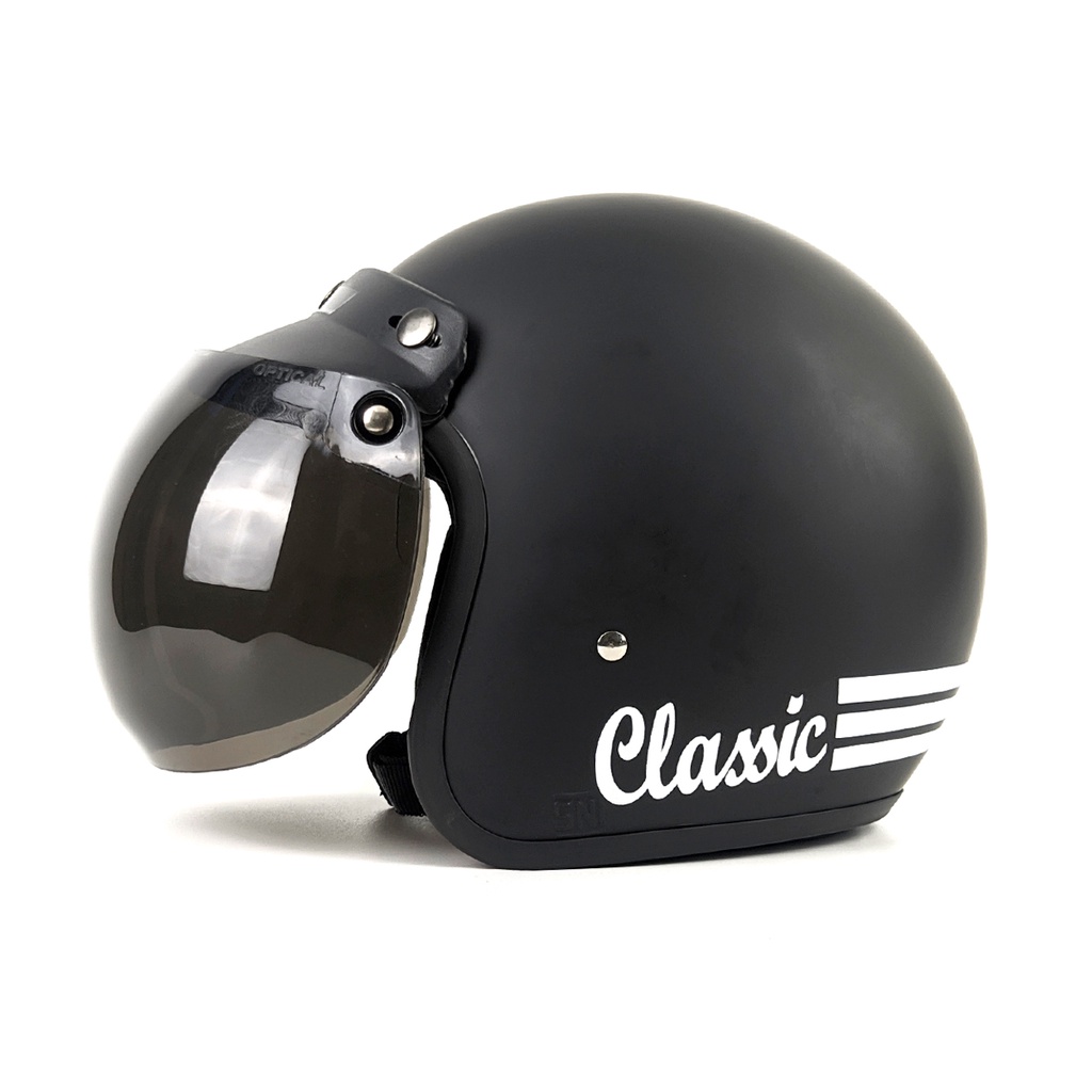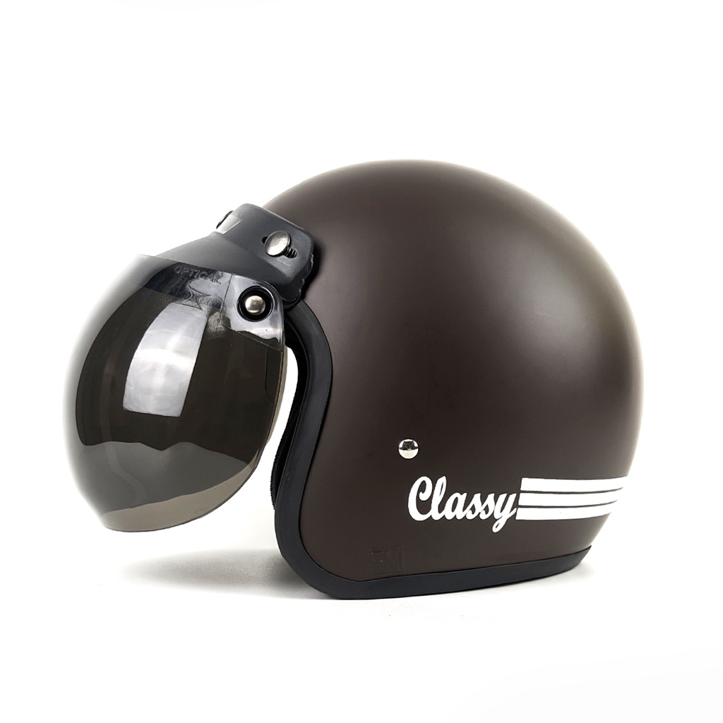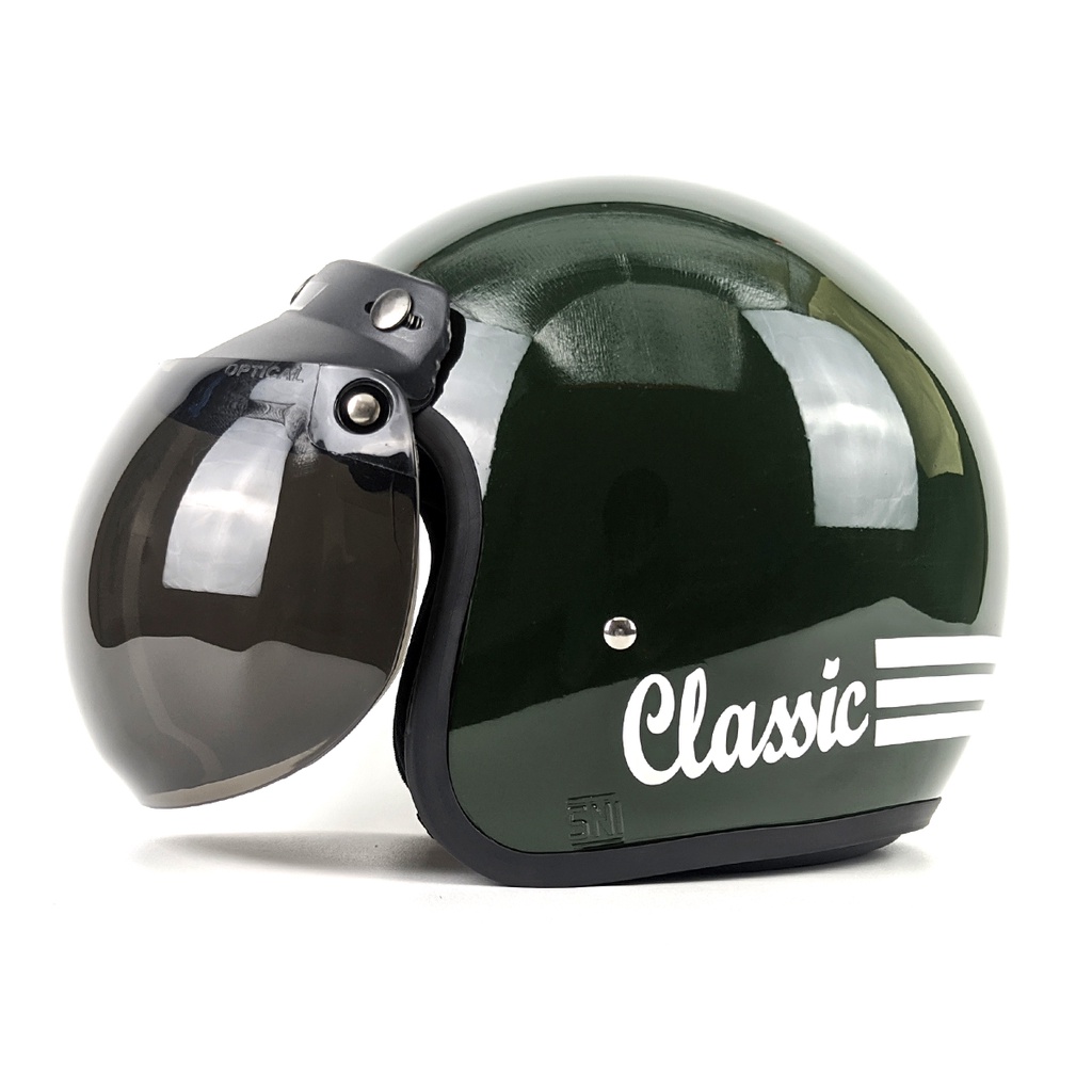 Helm Bogo Retro Dewasa SNI List Classic Polos Kaca Cembung Full Leher