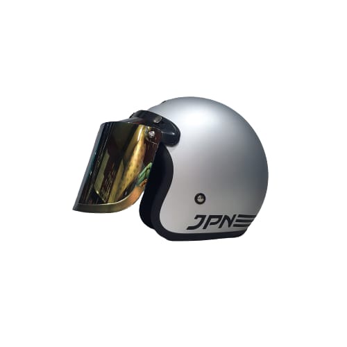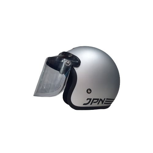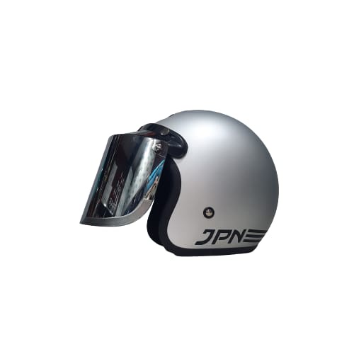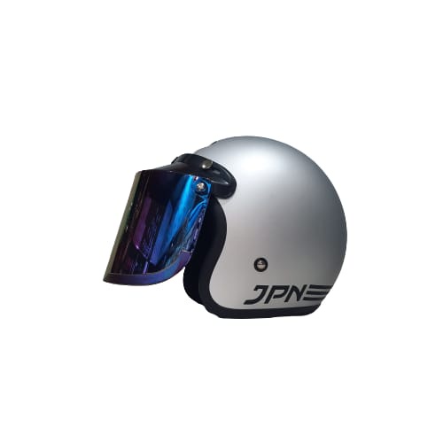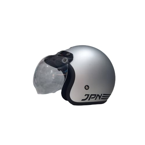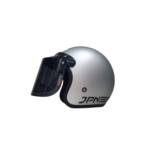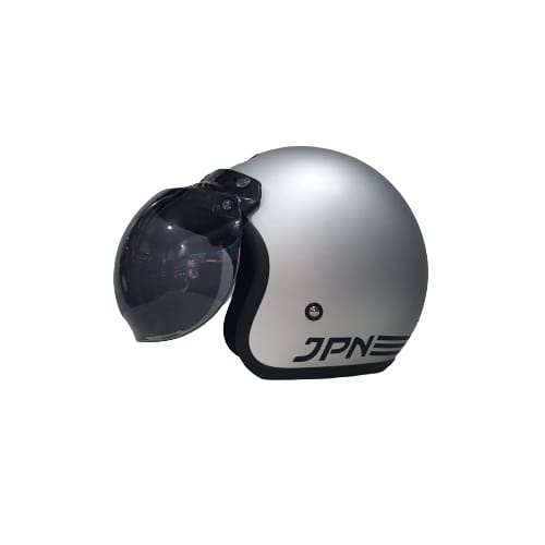 Helm Bogo Retro JPN ARC Silver Doff Kaca Visor Flat Datar Cembung Topi