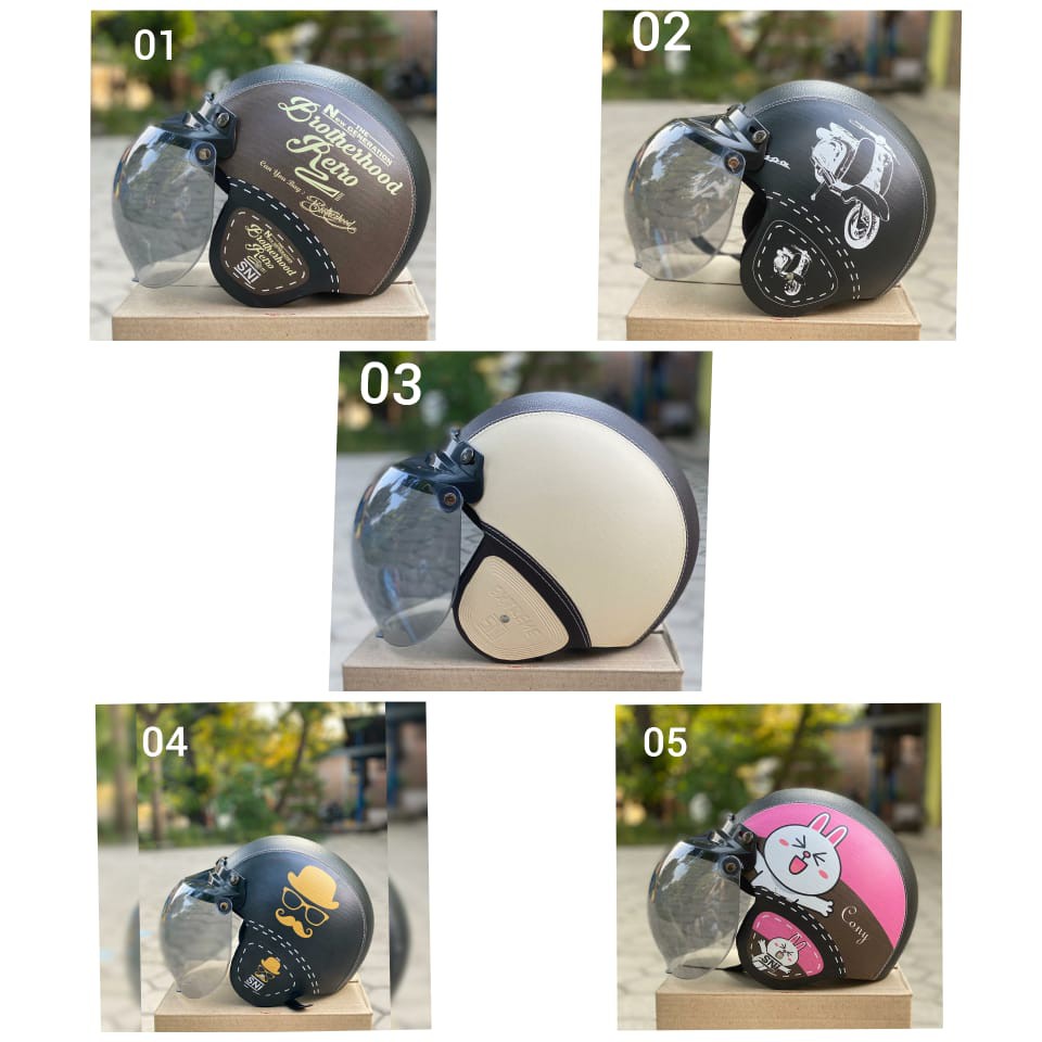 HELM BOGO Full Kulit Retro Klasik Kaca Lokal Ori Stitch Panda Doraemon Hello Kitty Keroppi Spongebob
