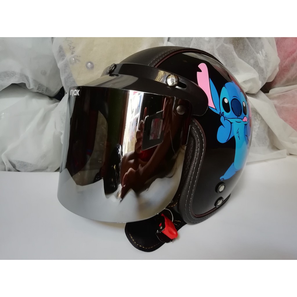 Kekurangan - Kekurangan membeli HELM BOGO STICH HITAM SEMIKULIT DEWASA KACA DATAR SILVER di Toko ini