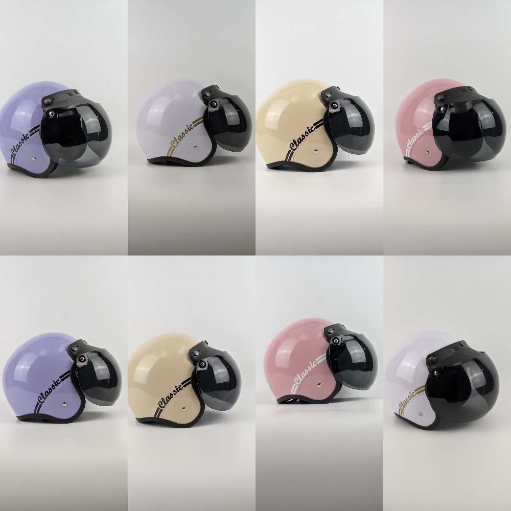 Helm/Helem Bogo Retro Ori SNI Classic wanita/klasik Cewek Dewasa Hijab Polos Murah+Kaca Cembung
