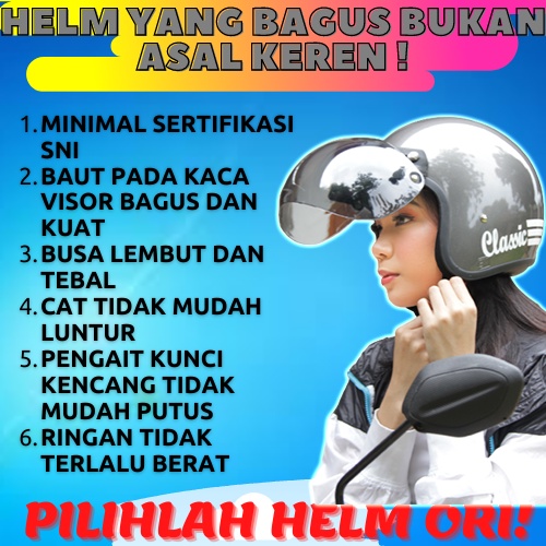 Kelebihan - Kelebihan membeli Helm/Helem Bogo Retro Ori SNI Classic wanita/klasik Cewek Dewasa Hijab Polos Murah+Kaca Cembung di Toko ini