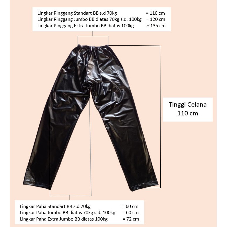 Produk ini memiliki 3 Variasi Ukuran yaitu : Standart BB s.d.70kg,Jumbo BB 70-100kg,Extra Jumbo BB 100up,