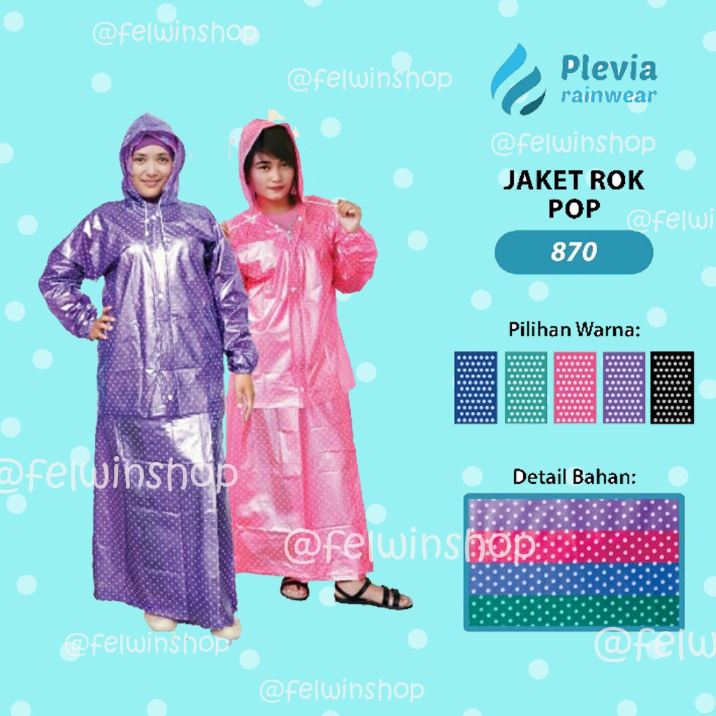 Jas Hujan Rok Polkadot Plevia POP 870 Stelan Perempuan Jaket Rok