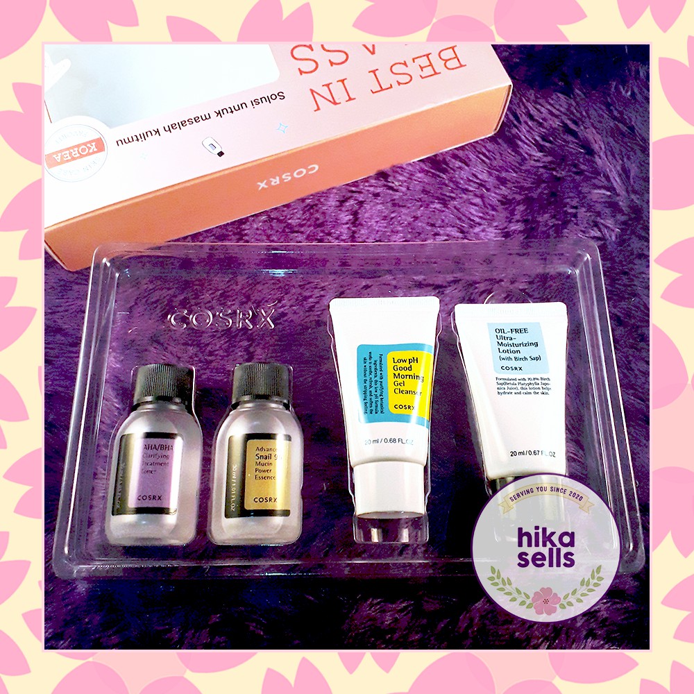 Produk [BPOM] COSRX AHA BHA/Snail Mucin/Low-pH Cleanser/Oil-free Trial Size Travel Mini Set Kit (20ml/30ml) ini harganya adalah Rp. 39.000,00 dan saat ini sedang Diskon 30%, Produk ini sendiri saat saya tulis Artikel ini sudah dilihat sebanyak 329 kali dan sudah disukai sebanyak 337 kali.
